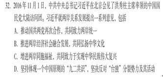 | 真题第15题 自2016年5月20日台湾地区新领导人就职以来,两岸制度化沟通和协调中断。其根本原因在于 A.台湾在美国测试新的导弹防御系统 B.台湾当局减少了赴台旅游大陆游客的配额 C.美国高规格“礼遇”台湾当局领导人过境 D.台湾当局没有明确承认“九二共识”及核心意涵 |