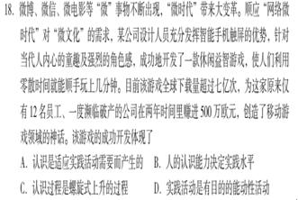 | 真题第17题 17.生物学史,可以说是显微镜的发展史。17世纪中叶,英国科学家使用诞生不久的显微镜观察软木塞,发现了植物细胞,开启了近现代生物学的大门。此后,显微镜的放大能力和成像质量不断提升,人类对细胞的认知也随之深刻和全面。20世纪中叶,科学家们利用X射线晶体学发现了DNA(脱氧核糖核酸)双螺旋结构,人类的观察极限从亚细胞结构推向了分子结构。我国科学家的重要科研成果“剪接体的高分辨率三维结构”的北后,也站着一个默默无闻的英雄——冷冻电子显微镜。显微镜在生物科学发现中的作用表明 A.实践主体、客体和中介三者的有机统一构成实践的基本结构 B.实践的主体和客体正是依靠中介系统才能够相互作用 C.人类认识水平的提高与实践条件的进步有着直接的关系 D.探索未知世界的科学实验是人类最基本的实践活动 |