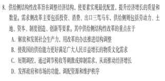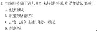 | 真题第6题 2010年是“十三五”规划开局之年,也是推进供给侧结构性改革的攻坚之年。推进供给侧结构性改革,是适应我国经济发展新常态的重大决策。其根本目的是 A.加快政府职能转变 B.提高供给质量满足需要 C.深化价格、财税、金融、社保等领域基础性改革 D.推进“去产能、去库存、去杠杆、降成本、补短板” |
