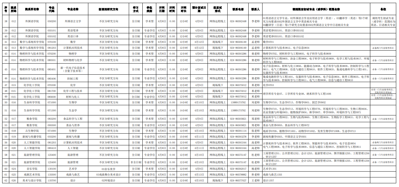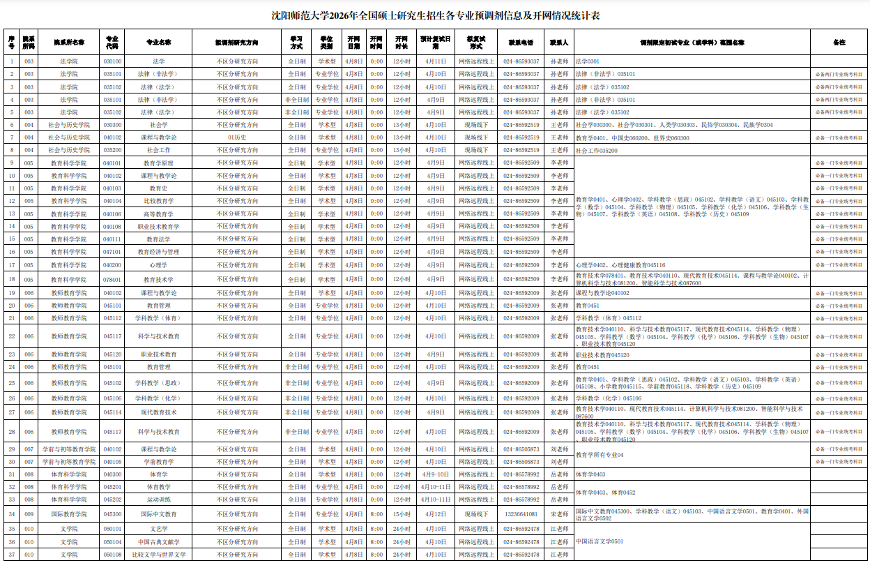 沈阳师范大学2026年全国硕士研究生招生考试各专业预调剂信息及开网情况公告