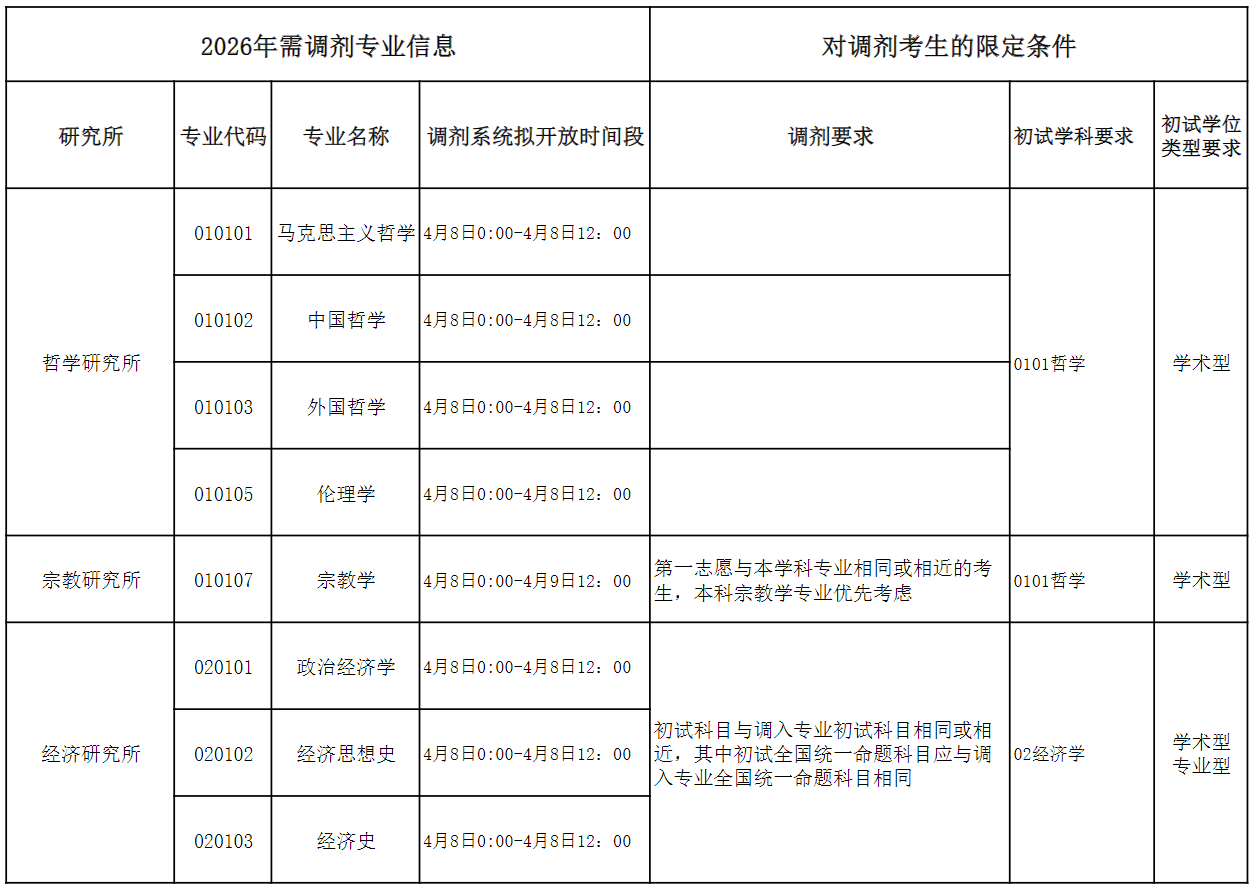 社会学研究所030301社会学专业 第二轮开放时间:4月15日0:00-4月16日12:00,调剂相关要求不变