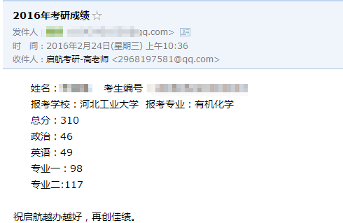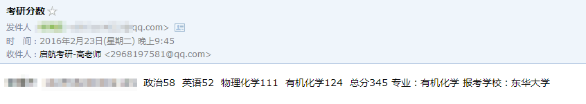 这几天,小航陆续收到了多位启航学员发来的考研成绩单,大家在2016年的研究生考试中取得了优异的成绩!