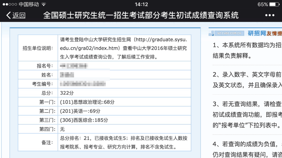 (信息必须包含名字、准考证号、单科分、总分、专业和报考学校)。