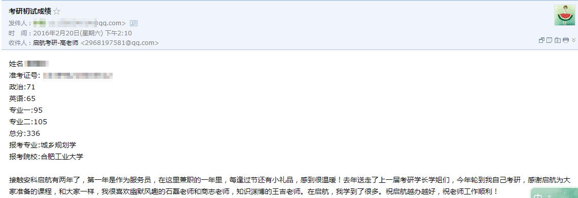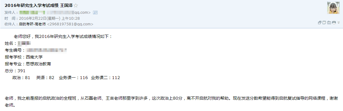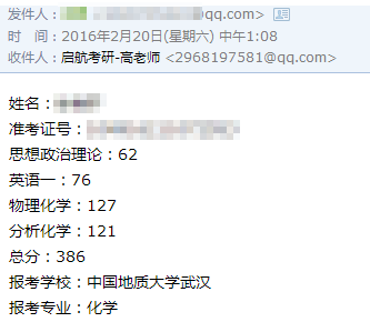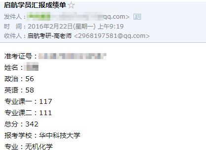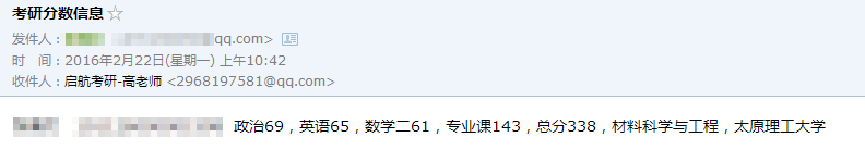 这几天,小航陆续收到了多位启航学员发来的考研成绩单,大家在2016年的研究生考试中取得了优异的成绩!