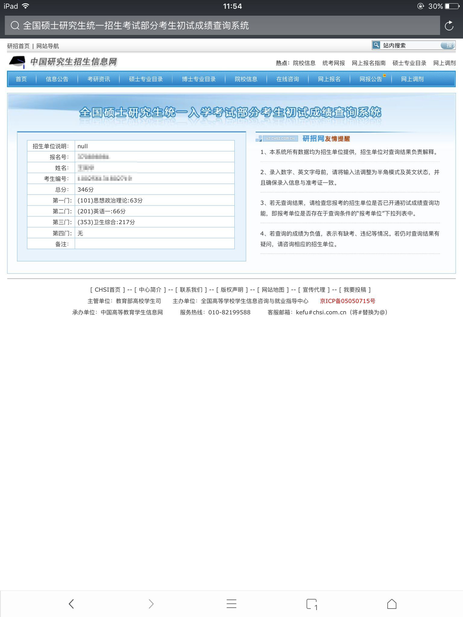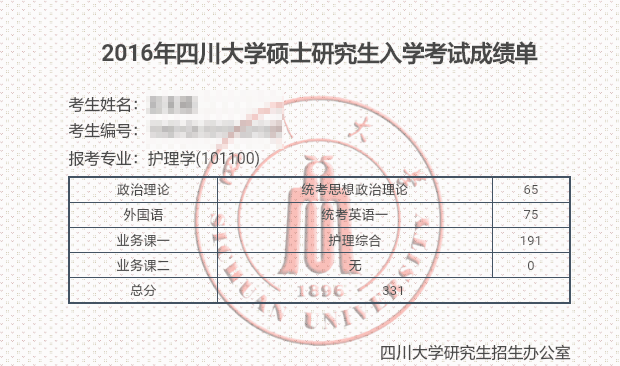 (信息必须包含名字、准考证号、单科分、总分、专业和报考学校)。